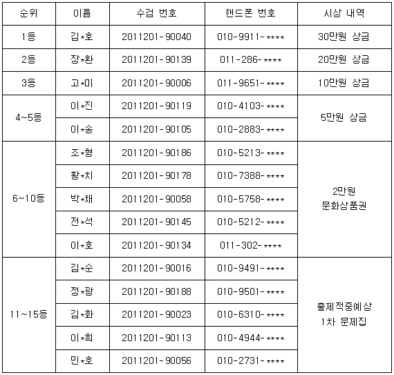 3. ÀÔ »ó ÀÚ : °³ÀÎÁ¤º¸ º¸È£¸¦ À§ÇÏ¿© À̸§ ¹× ÇÚµåÆù¹øÈ£ÀÇ ÀϺθ¦ °¡¸®°í °ÔÀçÇÕ´Ï´Ù.